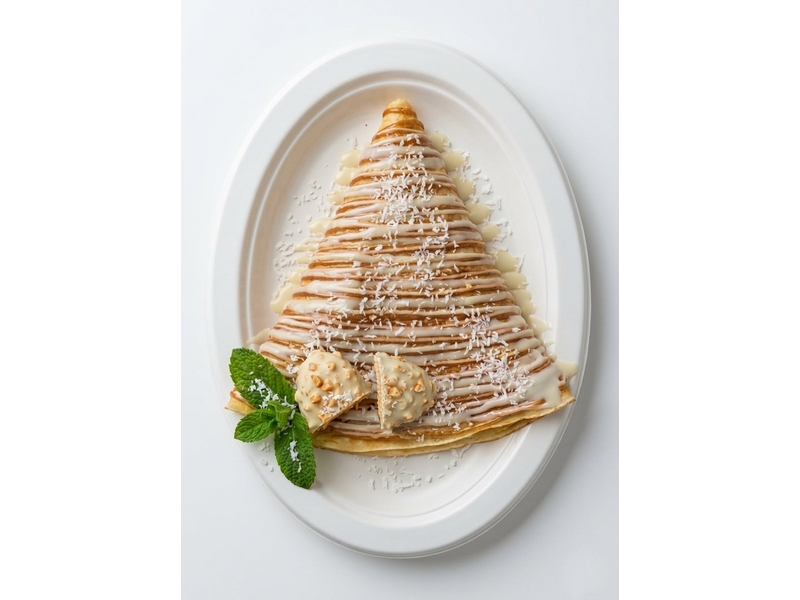 Начинка: Нутелла, Банан, Киви - Украшение: Молочный шоколадный топпинг, Сгущёнка, Кокосовая стружка, Мята