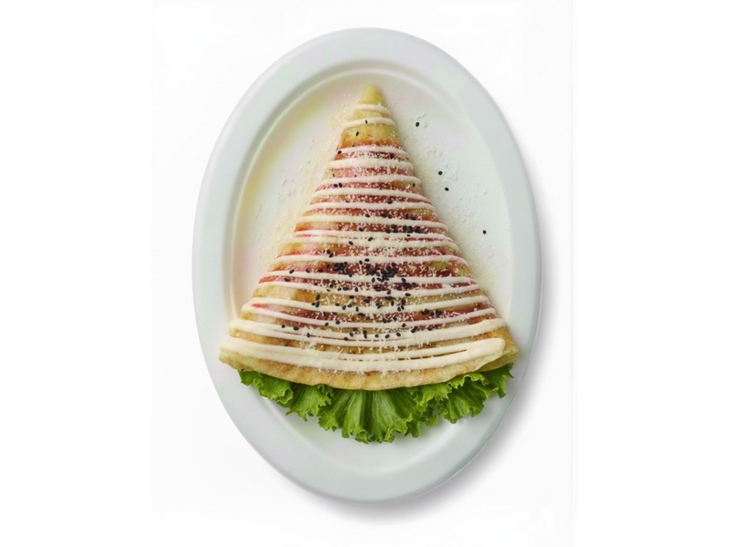 Начинка: Хамон,Листья Салата,Бекон,Сыр плавленный,Сыр Моцарелла,Гранатовый соус