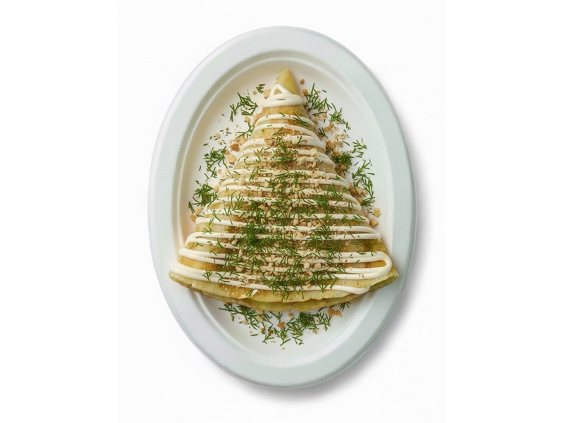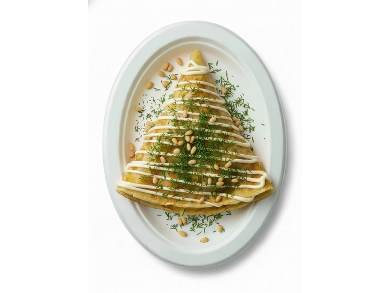 Начинка: Куриное филе, Шампиньоны, Лук жареный, Сыр Гауда, Сливки 10%.