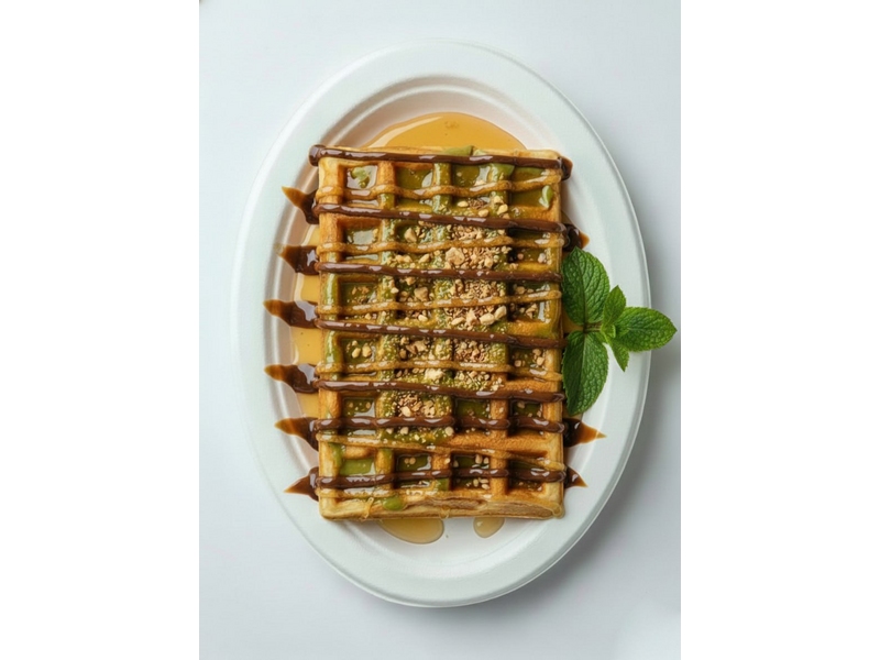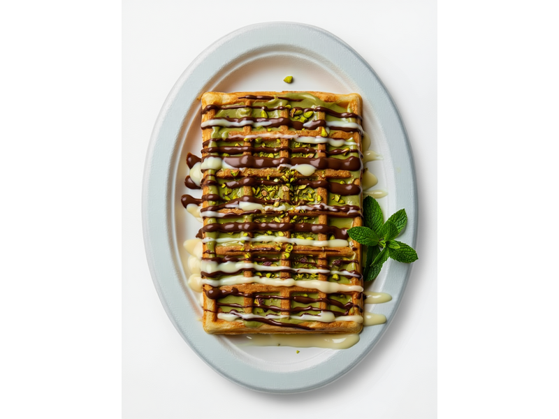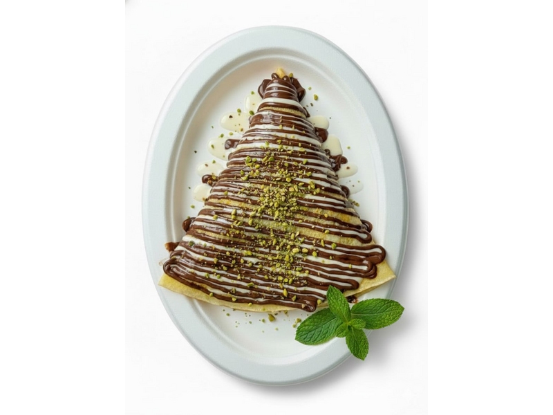 Начинка: Катаифи, Фисташковая паста, Сироп, Молочный шоколадный топпинг, Сгущёнка, Фисташка, Мята.
