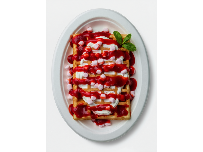 Украшение: Взбитые сливки, Варенье клубничное, Клубничный топпинг, Маршмэллоу, Мята.