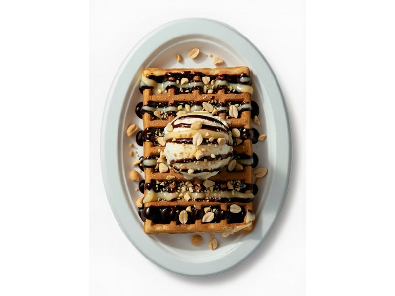 Начинка: Мороженое на выбор, Молочный шоколадный топпинг, Сгущёнка, Арахис, Пудра, Мята.