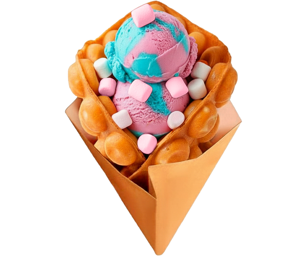 Начинка: Мороженое bubble gum - Украшение: Клубничный топпинг, Сгущёнка, Маршмэллоу, Драже