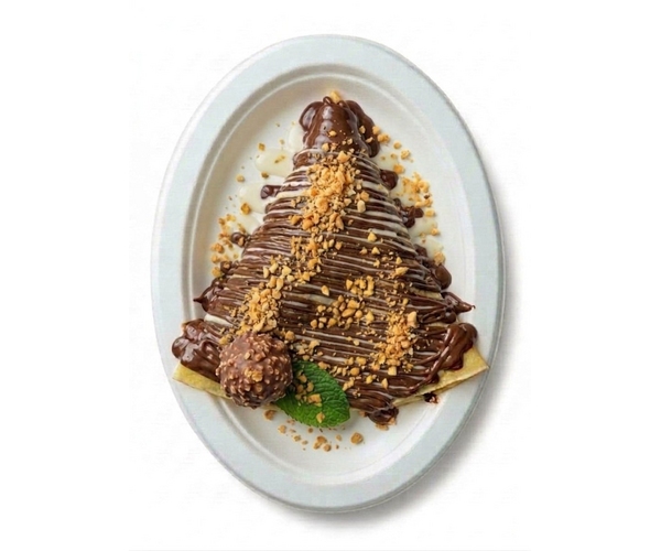 Начинка: Нутелла, Банан, Сгущёнка, Молочный шоколадный топпинг, Арахис, Посыпка.