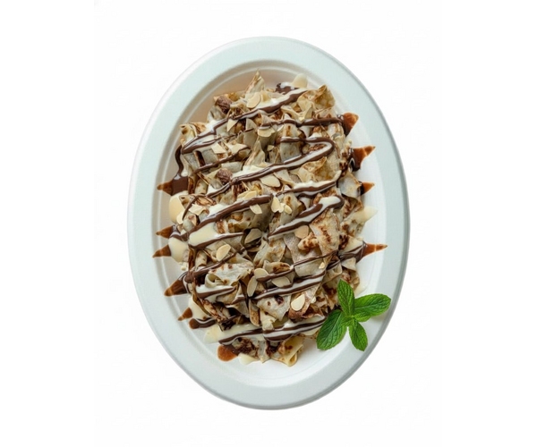 Начинка: Кадаиф, Арахисовая паста, Сироп, Молочный шоколадный топпинг, Арахис дроблёный, Мёд, Мята.