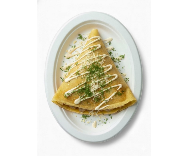 Начинка: Куриное филе, Шампиньоны, Лук жареный, Сыр Гауда, Сливки 10%.